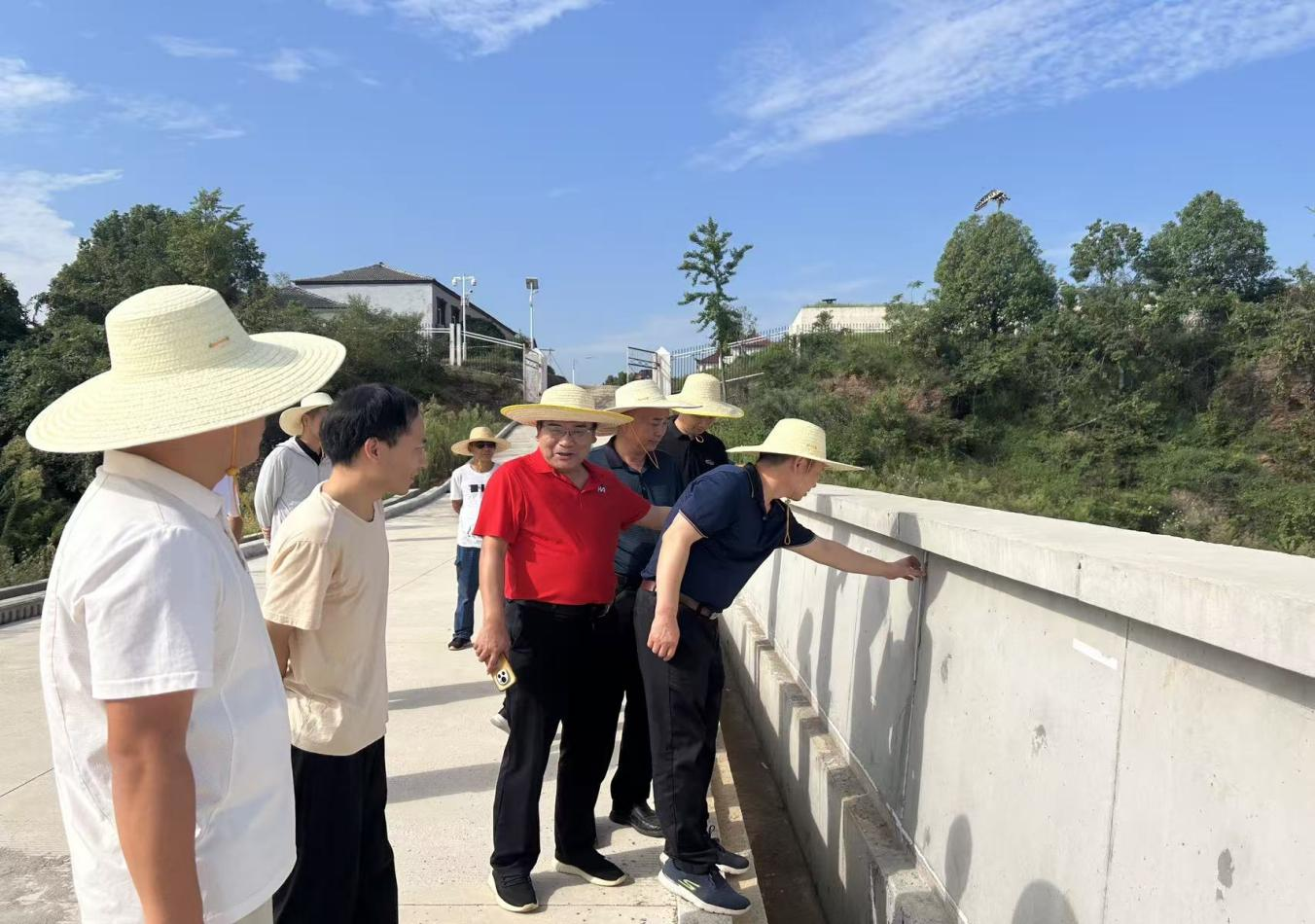 圖:工作組實地勘查高關(guān)水庫除險加固項目單位工程驗收工作