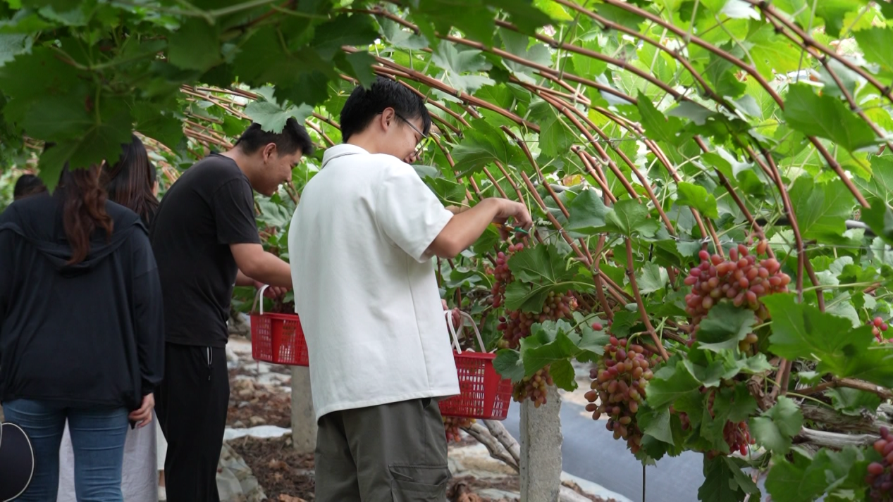 清晨的陽光穿透葡萄藤葉,灑下斑駁光影。園區(qū)內(nèi),游客們手提果籃穿梭在藤蔓之間,指尖輕觸飽滿的果實(shí),歡聲笑語在田間隨風(fēng)飄蕩。“園區(qū)特別大,葡萄品種也多,‘妮娜皇后’甜得很,我準(zhǔn)備多帶些回去給同事、朋友和家人嘗嘗。”游客張思怡一邊挑選葡萄,一邊笑著說道。