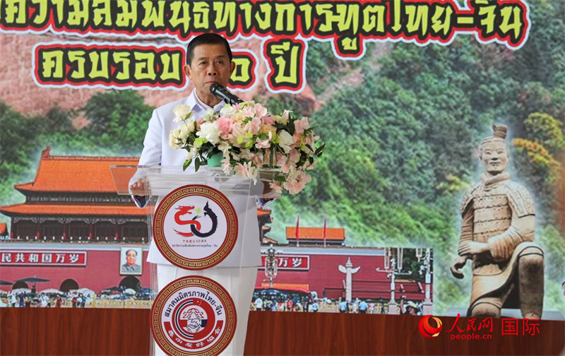 泰國前副總理兼泰中友好協(xié)會(huì)會(huì)長功·塔帕朗西致辭。人民網(wǎng)記者 簡承淵攝
