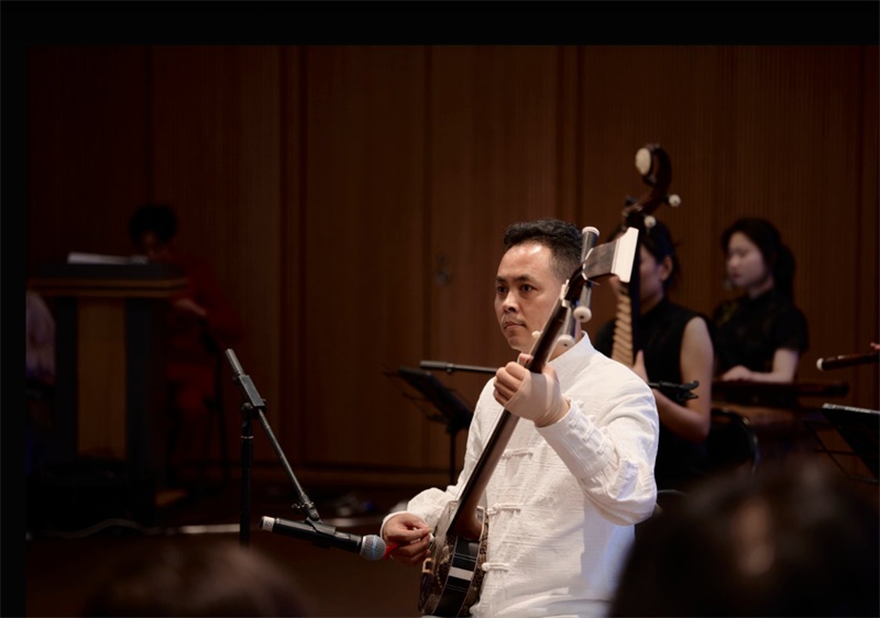 在中國(guó)館多功能廳中,精彩演出依次亮相。來(lái)自《黑神話(huà):悟空》的音樂(lè)作品率先將現(xiàn)場(chǎng)點(diǎn)燃,熊竹英以陜北說(shuō)書(shū)唱腔演奏歌曲《黃風(fēng)嶺》,高亢的民族特色音樂(lè)迅速感染了現(xiàn)場(chǎng)觀眾?!逗谏裨?huà):悟空》游戲主題曲配合現(xiàn)場(chǎng)大屏展示游戲影像資料,用音樂(lè)帶大家回顧了游戲一路走來(lái)的開(kāi)發(fā)歷程。