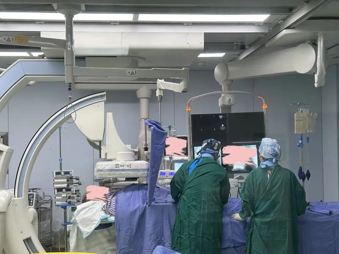 面對這一特殊情況,介入團(tuán)隊(duì)立即啟動應(yīng)急預(yù)案,向醫(yī)務(wù)部報(bào)備,并通過電話與家屬充分溝通病情和治療方案,在獲得家屬電話授權(quán)同意后,醫(yī)療團(tuán)隊(duì)迅速為夏先生實(shí)施腦動脈溶栓術(shù)。整個(gè)過程中,麻醉科、重癥醫(yī)學(xué)科專家全程密切監(jiān)測生命體征,隨時(shí)準(zhǔn)備應(yīng)對可能出現(xiàn)的病情變化。