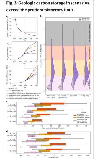 在本項(xiàng)研究中,論文第一作者和通訊作者、奧地利國(guó)際應(yīng)用系統(tǒng)分析研究所Matthew J. Gidden與同事及英國(guó)、法國(guó)、德國(guó)等合作者一起,在分析穩(wěn)定地質(zhì)構(gòu)造的同時(shí)考慮到環(huán)境敏感地點(diǎn)、與人口中心的距離,以及缺乏政府支持這類風(fēng)險(xiǎn)因素,從而量化了地球?qū)嶋H能支持的地質(zhì)碳儲(chǔ)量。他們研究發(fā)現(xiàn),這種更謹(jǐn)慎的估算得出的地球二氧化碳地質(zhì)封存潛力為1.46萬億噸,而且這一潛力可能在2200年被用盡。