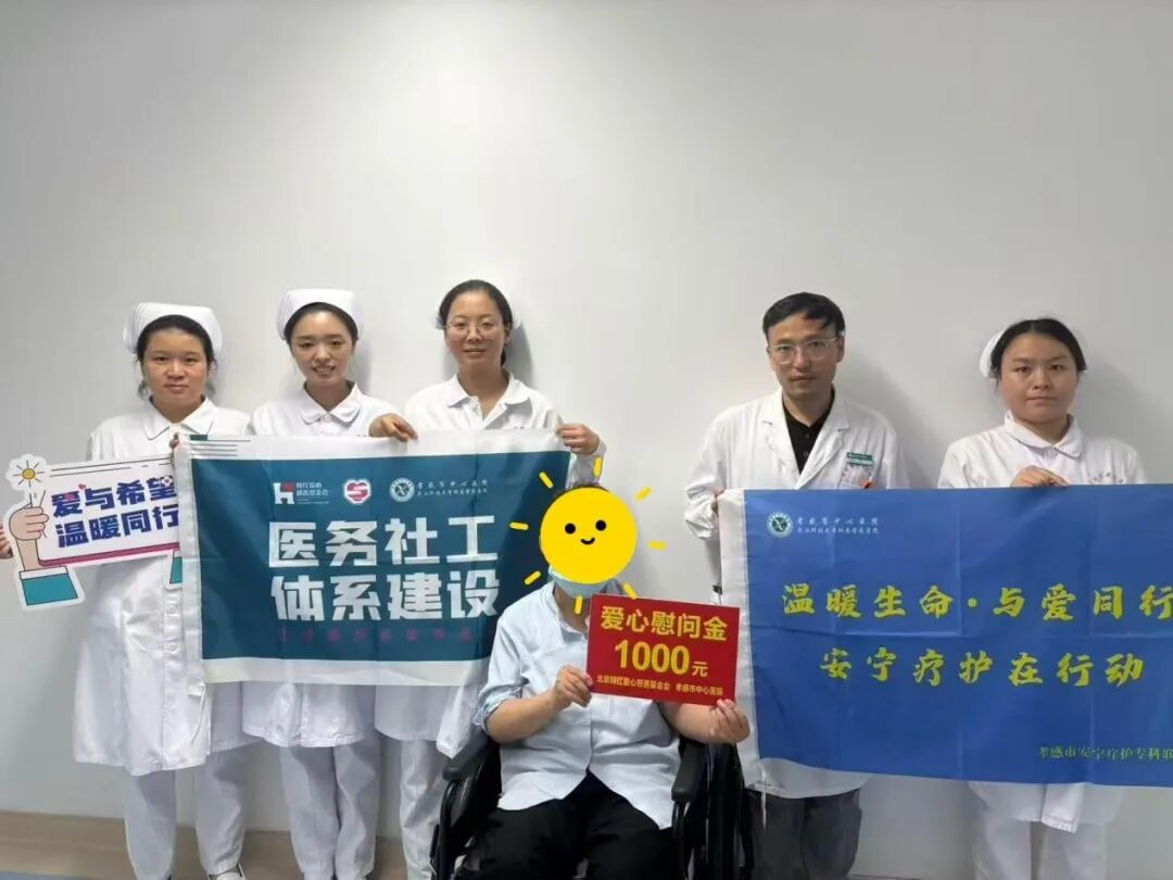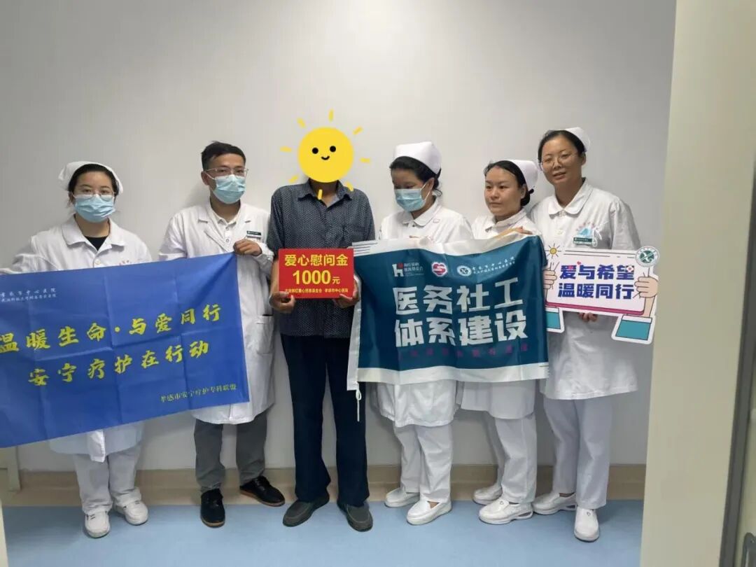 在此次關(guān)愛行動(dòng)中,市中心醫(yī)院積極鏈接社會(huì)慈善資源,與北京韓紅愛心慈善基金會(huì)展開深度合作。8月份期間,共為7戶經(jīng)濟(jì)特別困難的末期癌癥患者家庭每戶送去了1000元慰問金。這筆來自韓紅基金會(huì)的愛心善款,在一定程度上緩解患者家庭在應(yīng)對(duì)疾病過程中產(chǎn)生的經(jīng)濟(jì)壓力,也讓他們真切地感受到了社會(huì)各界的深切關(guān)懷。