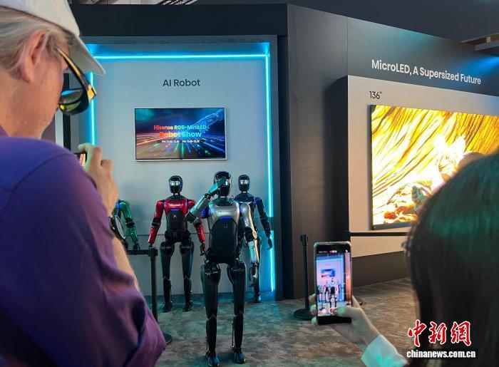 當(dāng)?shù)貢r(shí)間9月5日,2025年德國(guó)柏林國(guó)際消費(fèi)電子展(IFA)在柏林會(huì)展中心開(kāi)幕。圖為海信正在研發(fā)的具身智能人形機(jī)器人引圍觀。中新社記者 馬秀秀 攝