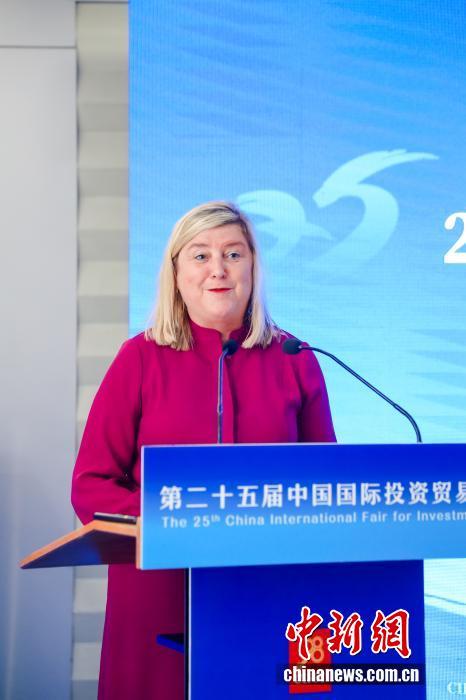 倫敦發(fā)展促進(jìn)署經(jīng)貿(mào)科創(chuàng)產(chǎn)業(yè)董事總經(jīng)理珍妮特·科伊爾(Janet Coyle)9月8日在廈門舉行的2025中英健康創(chuàng)新平臺投資促進(jìn)活動致辭。第二十五屆中國國際投資貿(mào)易洽談會組委會 供圖