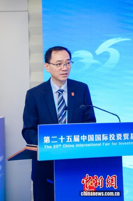 中國商務(wù)部投資促進(jìn)事務(wù)局局長劉民強(qiáng)9月8日在廈門舉行的2025中英健康創(chuàng)新平臺投資促進(jìn)活動致辭。第二十五屆中國國際投資貿(mào)易洽談會組委會 供圖