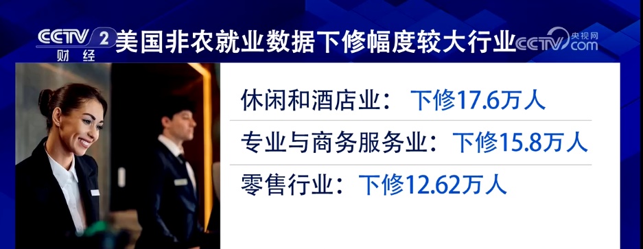 具體而言,下修幅度最大的情況出現(xiàn)在休閑和酒店業(yè)、專業(yè)與商務(wù)服務(wù)業(yè),以及零售行業(yè),以上三大類均減少了10萬以上的就業(yè)人數(shù)。美國咨詢公司CulturePartners告訴CNBC,這些行業(yè)都與消費(fèi)者需求密切相關(guān),意味著美國的家庭支出正在收縮。