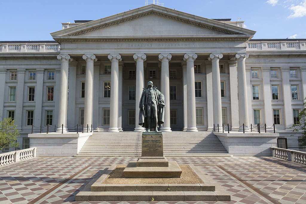 △美國(guó)財(cái)政部大樓(資料圖)