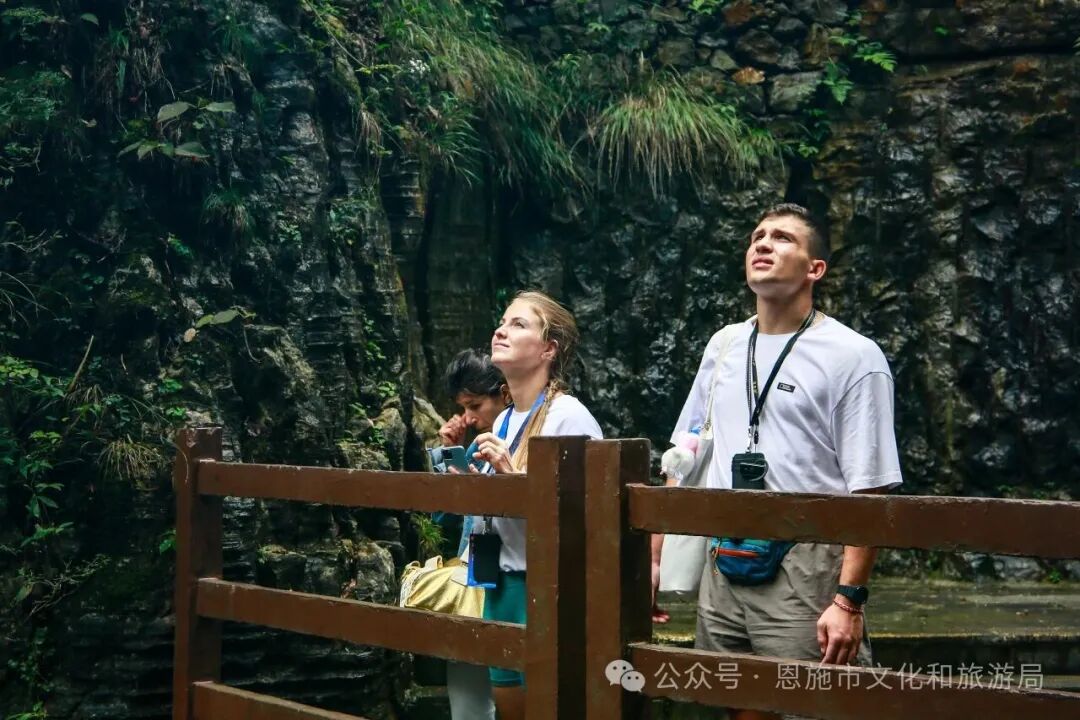 次日,旅行商們來(lái)到恩施大峽谷,被大自然的鬼斧神工所震撼。雄奇險(xiǎn)峻的山峰、幽深秀麗的峽谷、飛珠濺玉的瀑布,以及獨(dú)特的喀斯特地貌,構(gòu)成了一幅幅如詩(shī)如畫(huà)的美景。大家紛紛拍照留念,贊嘆不已。“這里的自然風(fēng)光太壯觀了,相信一定會(huì)吸引大量國(guó)外游客前來(lái)觀光。”來(lái)自俄羅斯的旅行商激動(dòng)地說(shuō)。
