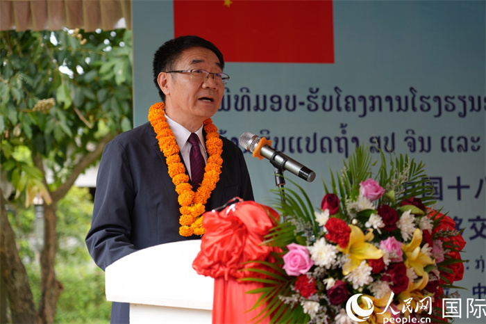 中國駐瑯勃拉邦總領事張社平致辭。人民網(wǎng)記者 簡承淵攝
