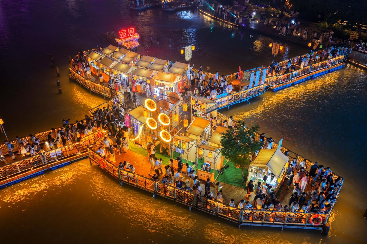 新大集拉動新消費。9月16日晚19:00至21:00,在恩施州宣恩縣城沿河兩岸開設(shè)特色水上市集,商家與NPC以特定古風(fēng)造型進行集市售賣。形式新穎、文化元素突出,深受年輕消費者喜愛。家電、3C數(shù)碼、汽車等商品集中亮相,以舊換新、專項優(yōu)惠福利、促銷大禮包抽獎等各類活動持續(xù)推出,現(xiàn)場消費火熱。
