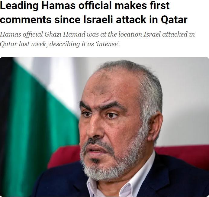 加齊·哈馬德表示,空襲發(fā)生在“我們開始研究加沙?;鹛嶙h不到一個小時之后”,哈馬斯領導層當時正在討論美國通過卡塔爾轉交的一項建議。