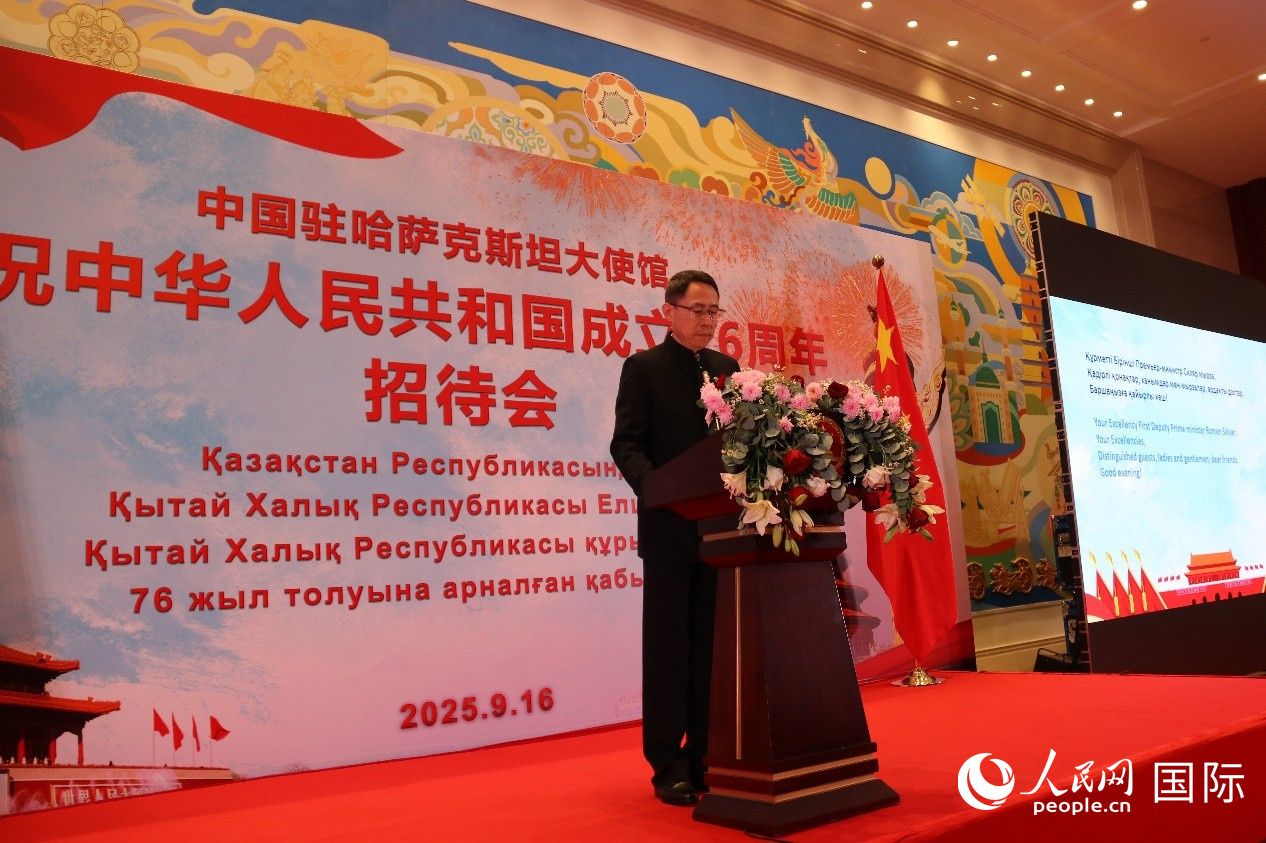 人民網(wǎng)阿斯塔納9月17日電(記者李強(qiáng))9月16日,中國(guó)駐哈薩克斯坦大使館舉辦慶祝中華人民共和國(guó)成立76周年招待會(huì)。中國(guó)駐哈薩克斯坦大使韓春霖、哈第一副總理斯克利亞爾出席并致辭。哈副外長(zhǎng)巴卡耶夫、政府和議會(huì)政要,各國(guó)駐哈使節(jié)和國(guó)際組織代表,在哈中資機(jī)構(gòu)、華僑華人和留學(xué)生代表以及使館全體外交官等約500人出席。