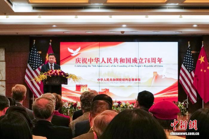當(dāng)?shù)貢r(shí)間9月17日,中國(guó)駐紐約總領(lǐng)館舉行慶祝中華人民共和國(guó)成立76周年招待會(huì)。 王帆 攝