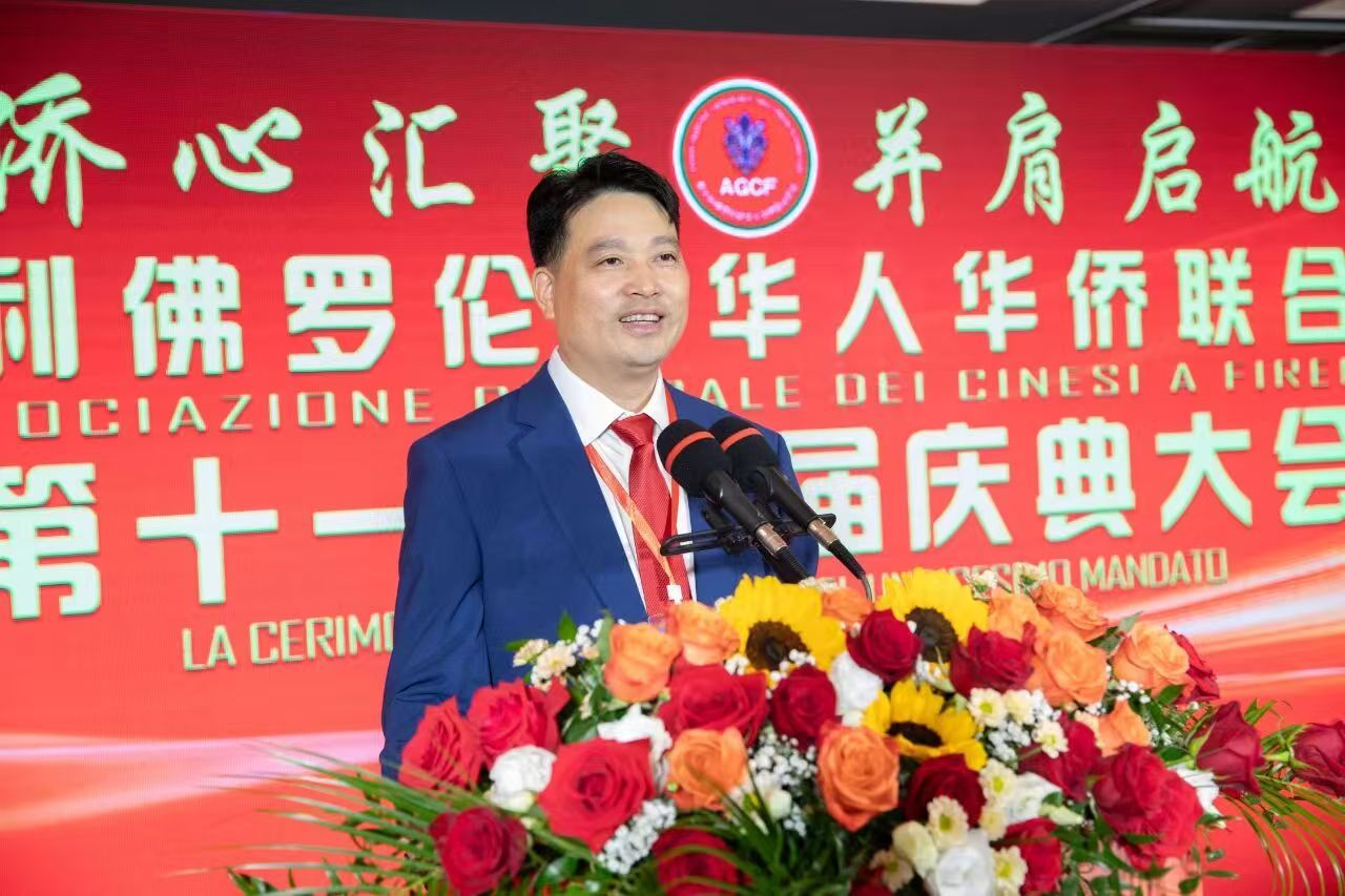 意大利佛羅倫薩華人華僑聯(lián)合總會新任會長鄭再生致辭。 主辦方供圖
