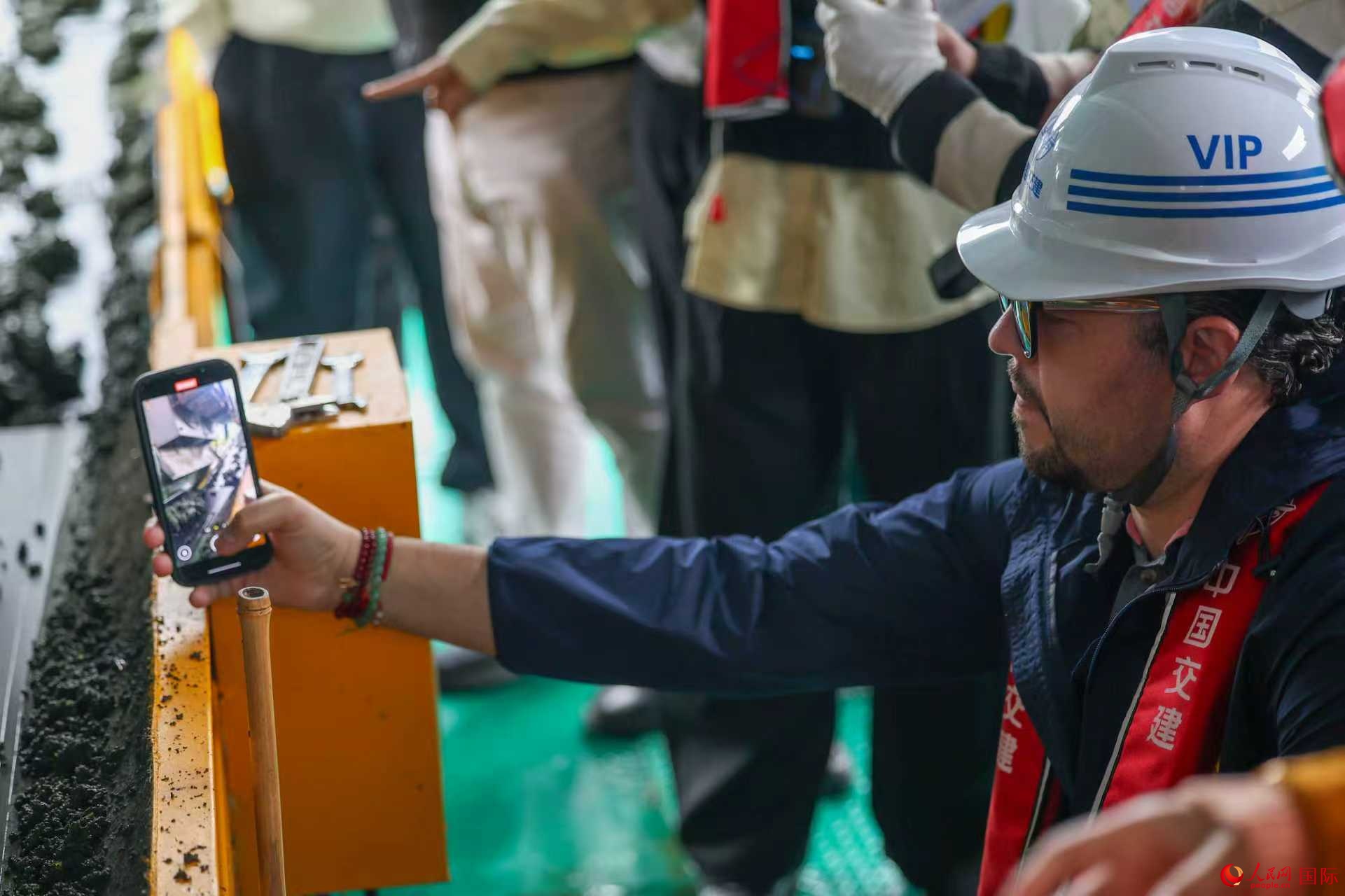 2025“一帶一路”媒體合作論壇中外媒體聯(lián)合采訪團(tuán)的外媒記者正在拍攝“藻水共治”一體化平臺(tái)過(guò)濾產(chǎn)生的藻泥。人民網(wǎng)記者 張武軍攝