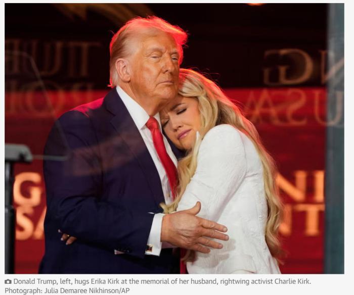 9月21日,查理·柯克的追悼會(huì)在亞利桑那州格倫代爾舉行。美國(guó)總統(tǒng)特朗普、美副總統(tǒng)萬(wàn)斯以及查理·柯克的遺孀埃里卡·柯克成為主要發(fā)言人。美國(guó)億萬(wàn)富豪馬斯克也現(xiàn)身追悼會(huì)現(xiàn)場(chǎng)?,F(xiàn)場(chǎng)圖片顯示,特朗普同馬斯克進(jìn)行了交談。