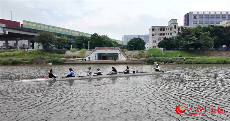 人民網(wǎng)外國(guó)專家在茅洲河體驗(yàn)賽艇。人民網(wǎng) 王君哲攝