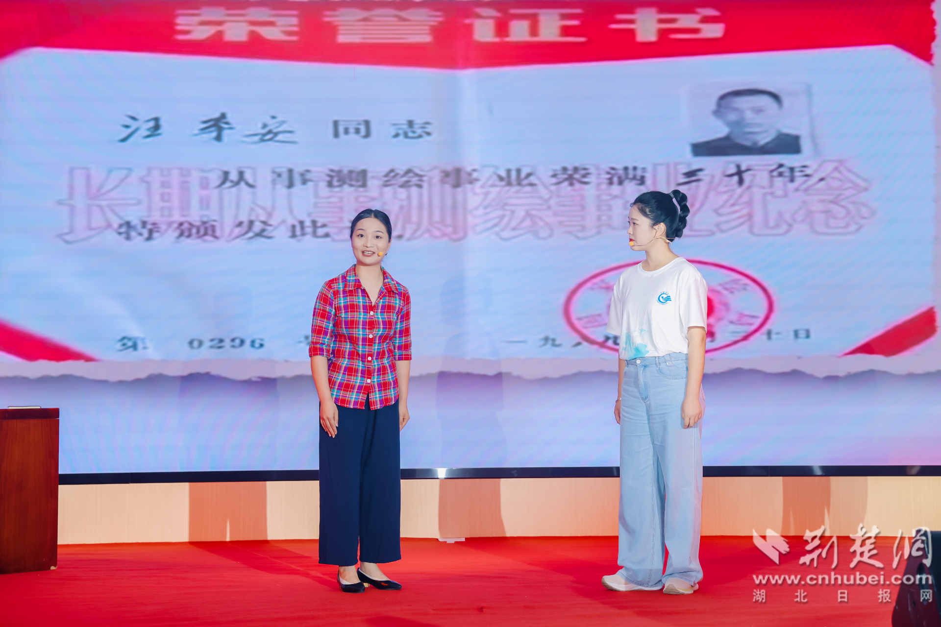 音樂黨課以毛澤東詩詞名句為脈絡(luò),在《江河萬古流》的旋律中拉開序幕,分為三個(gè)篇章展開。在第一篇章《江湖安瀾篇·高峽出平湖》中,天門市水文局講述了祖孫三代74年扎根基層“把脈江湖”的故事;宜昌市水文局通過情景劇展現(xiàn)了從傳統(tǒng)測(cè)量到無人機(jī)三維測(cè)繪、遠(yuǎn)程雷達(dá)波在線監(jiān)測(cè)的水文技術(shù)變遷。展現(xiàn)了百年水文發(fā)展巨變,水利建設(shè)成果豐碩。
