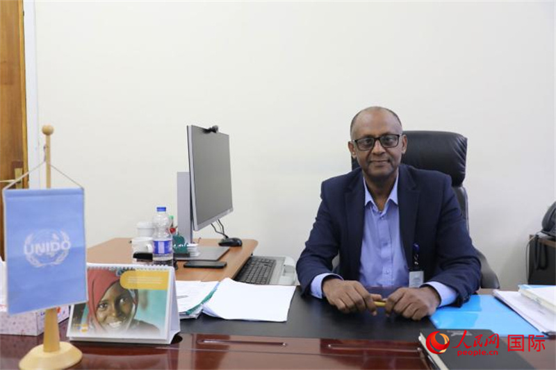 圖為聯(lián)合國(guó)工發(fā)組織埃塞區(qū)域辦事處國(guó)家項(xiàng)目官員阿塞吉德。人民網(wǎng)記者 沈小曉攝