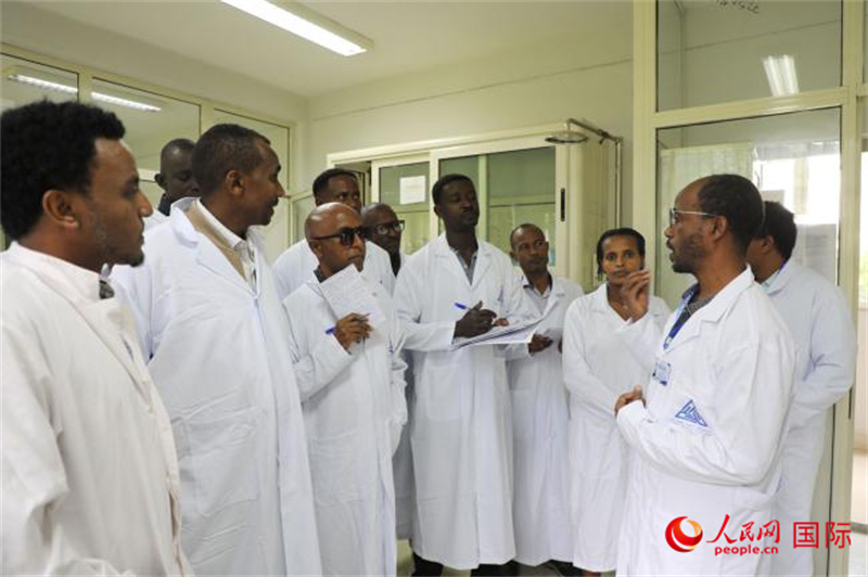 當(dāng)記者在檢測(cè)中心采訪時(shí),正好碰上了一次項(xiàng)目培訓(xùn),培訓(xùn)人員來自埃塞俄比亞國(guó)內(nèi)各省和地區(qū)?,F(xiàn)場(chǎng)培訓(xùn)氛圍非常好,講師和學(xué)員之間充滿了問答和高度參與的互動(dòng),學(xué)員們把講師圍了個(gè)里三層外三層,積極地提問。