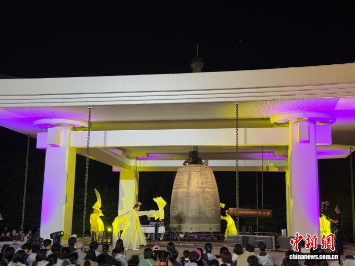 9月24日晚,韓國(guó)國(guó)立慶州博物館舉行圣德大王神鐘敲鐘儀式。圖為儀式現(xiàn)場(chǎng)。中新網(wǎng)記者 劉旭 攝