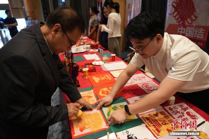 圖為嘉賓在中國文化展臺(tái)體驗(yàn)拓印。記者 張興龍 攝