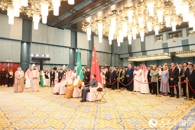 人民網(wǎng)利雅得9月26日電(記者任皓宇)9月25日,中國駐沙特使館舉行招待會,熱烈慶祝中華人民共和國成立76周年和中沙建交35周年。沙特利雅得地區(qū)副埃米爾穆罕默德·本·阿卜杜拉赫曼親王、沙內(nèi)政部副大臣阿卜杜勒阿齊茲·阿亞夫親王、沙外交部次大臣賽馬里以及沙政府有關(guān)部門和軍隊高級官員,各國駐沙使節(jié)和伊斯蘭合作組織代表,沙各界友好人士,在沙中資機構(gòu)、教師留學(xué)生、華僑華人代表約600人出席。