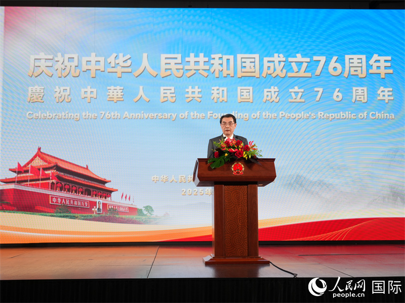 與會(huì)嘉賓祝賀新中國(guó)成立76周年。人民網(wǎng) 許可攝