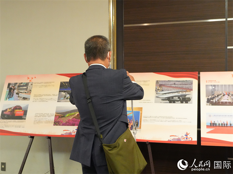 來賓觀看中國(guó)人民抗日戰(zhàn)爭(zhēng)、戰(zhàn)后中日關(guān)系恢復(fù)發(fā)展、中國(guó)式現(xiàn)代化及兩國(guó)重要政治、經(jīng)濟(jì)、文化、科技、人員交往活動(dòng)圖片視頻,現(xiàn)場(chǎng)氣氛熱烈友好。