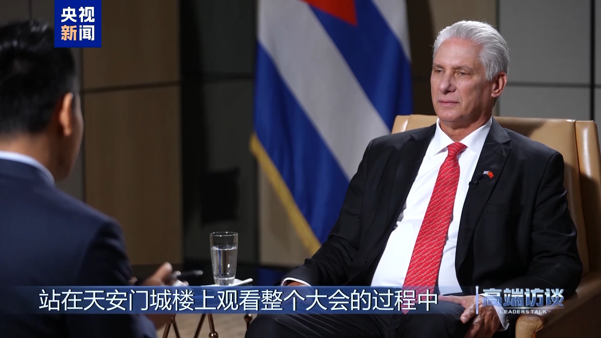 何巖柯:主席先生您好!很高興您再次接受《高端訪談》的專訪。這次來華,您出席了紀(jì)念中國人民抗日戰(zhàn)爭暨世界反法西斯戰(zhàn)爭勝利80周年大會(huì)。我注意到在大會(huì)之后您第一時(shí)間在社交媒體上寫下了自己的感受。您說,“中國引領(lǐng)捍衛(wèi)多邊主義與全球治理的斗爭,古巴為支持并踐行這些理念而自豪,并且榮幸出席紀(jì)念活動(dòng)”。所以首先想請您來分享一下,站在天安門城樓上觀看整個(gè)大會(huì)的過程中,您是一種什么樣的感受?