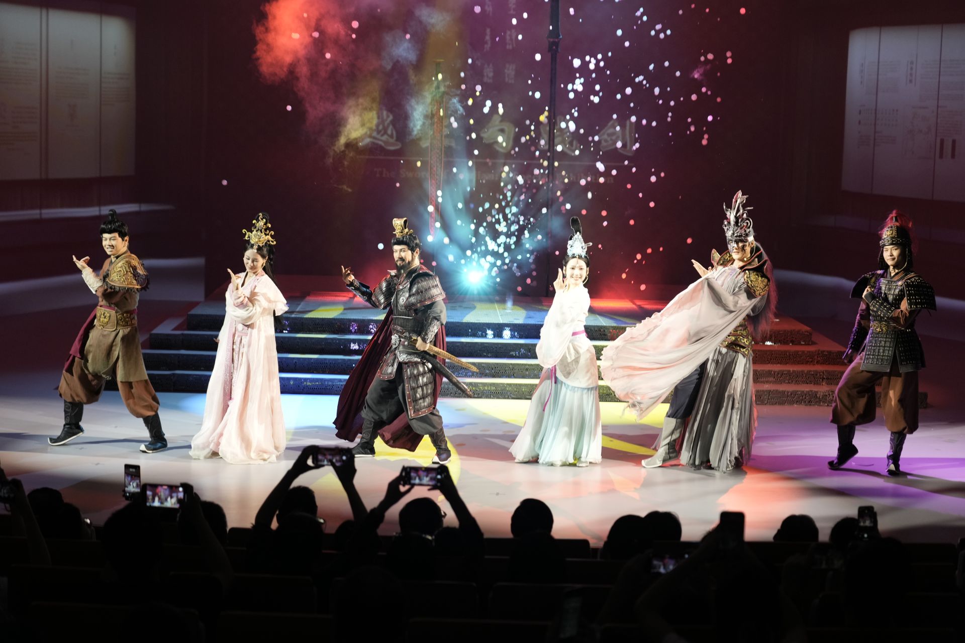 《遇見(jiàn)?勾踐劍》以楚越結(jié)盟為主線,通過(guò)勾踐歸國(guó)、鑄劍復(fù)國(guó)、西施入?yún)恰⒃匠?lián)姻、滅吳稱霸等篇章,講述了勾踐劍為何鑄造、又如何流入楚國(guó)的傳奇歷程,立足吳晉與楚越兩大聯(lián)盟爭(zhēng)霸春秋的歷史背景,生動(dòng)再現(xiàn)了時(shí)代風(fēng)云。該劇實(shí)現(xiàn)了戲劇藝術(shù)與科技手段的有機(jī)融合,以創(chuàng)新的全息投影與真人互動(dòng)形式,為觀眾奉上一場(chǎng)視聽(tīng)盛宴。
