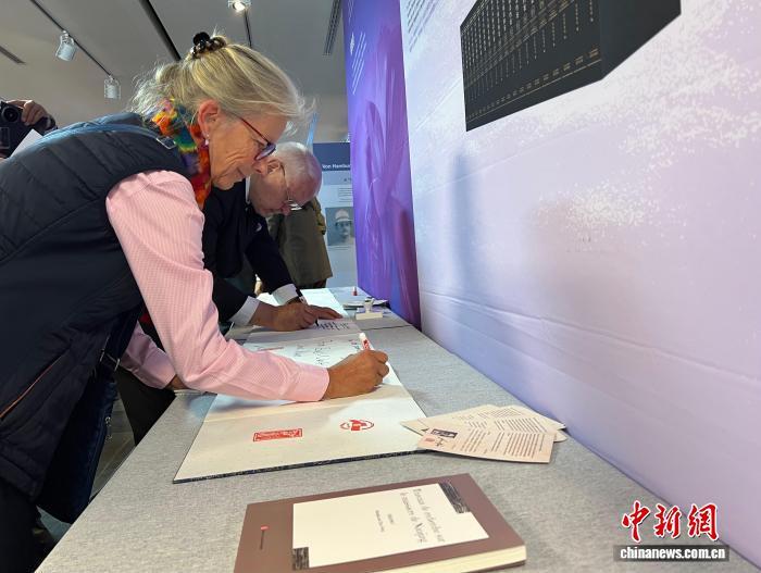 當(dāng)?shù)貢r(shí)間9月29日,“世界記憶 和平愿景——約翰·拉貝等德國(guó)人士見證的南京大屠殺”主題展覽在柏林中國(guó)文化中心開幕。圖為觀眾觀展后留言。中新社記者 馬秀秀 攝