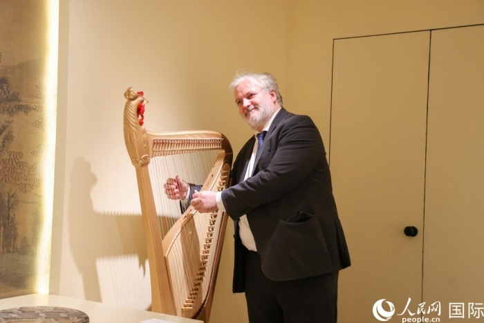 嘉賓體驗(yàn)中國(guó)樂(lè)器。人民網(wǎng)記者 任皓宇攝