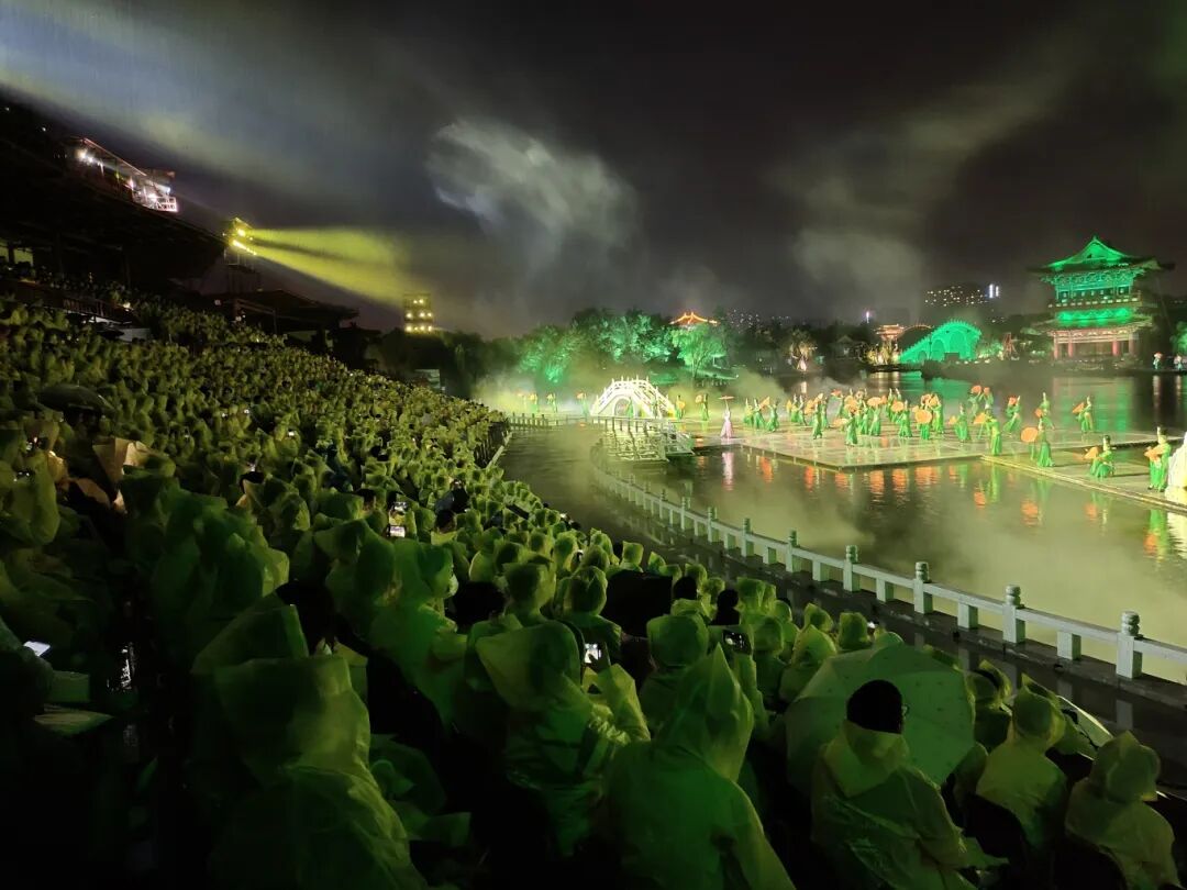 國慶期間(10月1日-8日),清明上河園會為游園的游客,免費發(fā)放園區(qū)專屬雨衣!免費領(lǐng)取熱熱的姜糖水,300場的演出數(shù)量不改,質(zhì)量不變,正常上演!請您放心,雨天有暖意,晴天有詩意,無論天氣如何變幻,清明上河園始終為您守護每一刻的美好。