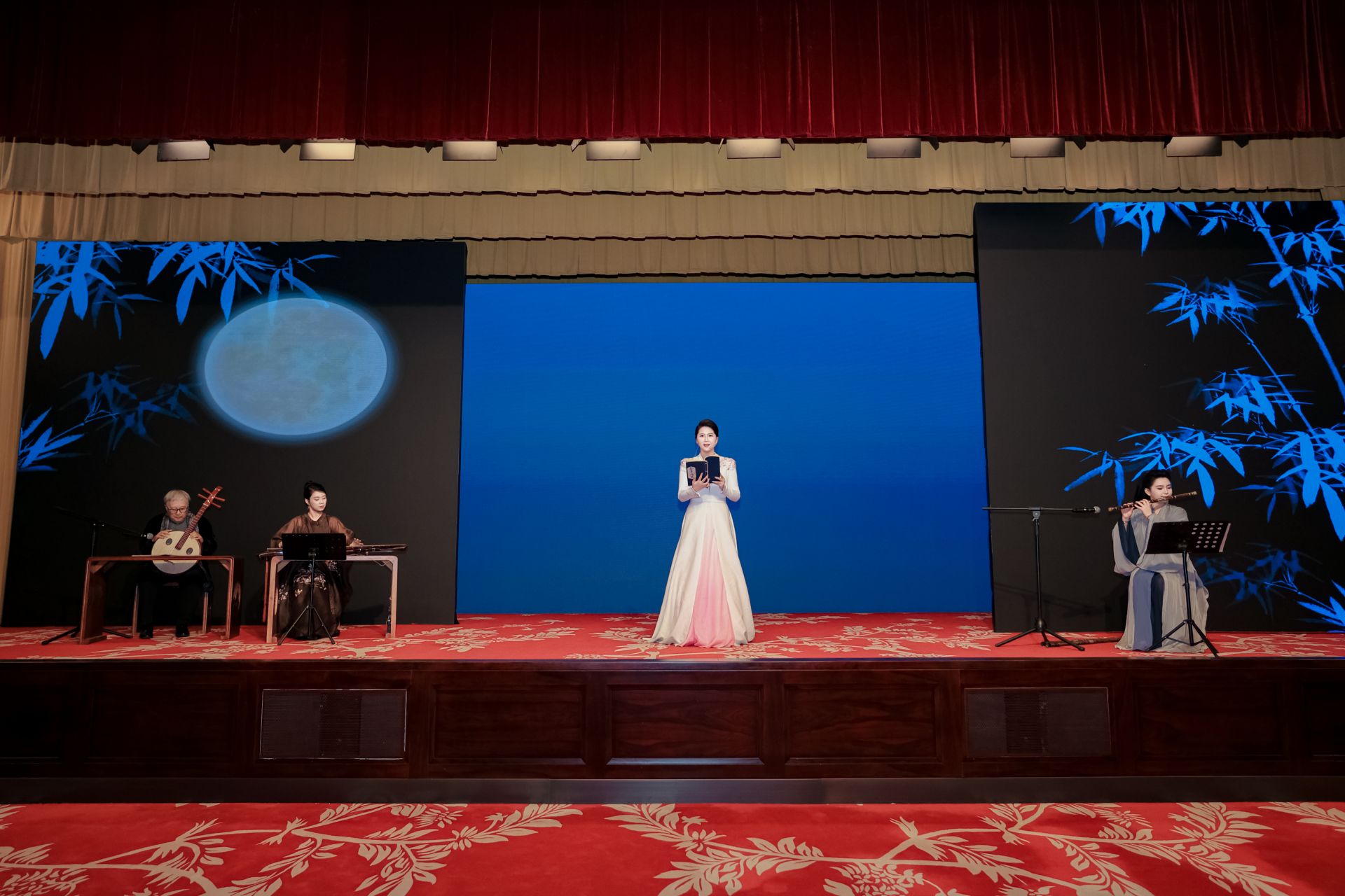 伴隨著熱烈掌聲,古琴·京劇跨界藝術(shù)《琴芳梅蘭》精彩上演。演出以梅蘭芳經(jīng)典京劇唱段為藍本,選取《貴妃醉酒》《霸王別姬》《洛神》三出劇目的經(jīng)典唱腔及曲牌,經(jīng)過重新編曲,以演奏、演唱及文化講述的形式精彩呈現(xiàn)。余韻悠遠的古琴演奏,配合原汁原味的梅派唱腔,輔以笛、簫等雅樂,實現(xiàn)京劇“梅派”藝術(shù)與古琴的完美交融。