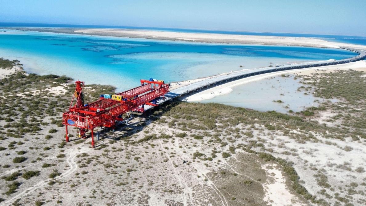 人民網(wǎng)迪拜10月2日電 (記者管克江)沙特紅海西海岸,郁郁蔥蔥的紅樹林上方,一座飛橋正在紅色鋼結(jié)構(gòu)樁梁一體機(jī)的牽引下逐步延伸?!斑@是中東地區(qū)首次投用樁梁一體機(jī)。使用這套自主研發(fā)的智能造橋裝備,我們能在架橋施工的同時(shí)保護(hù)當(dāng)?shù)厣鷳B(tài)?!鄙程丶t海拉赫克連接路與跨海橋工程項(xiàng)目經(jīng)理李偉偉介紹。