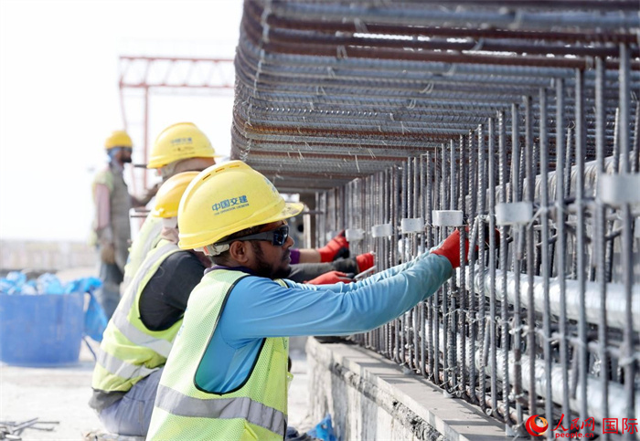 工人在捆扎預(yù)制梁鋼筋。人民網(wǎng)記者 管克江攝