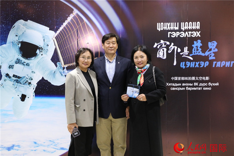 沈敏娟在致辭中說,《窗外是藍星》有很多項“第一”。它是中國第一部8K太空實拍電影,第一次由航天員使用國產攝影機拍攝,記錄了中國人第一次在中國空間站駐留6個月的非凡旅程。今天還是這部影片第一次在蒙古放映,我也要特別感謝CGTN烏蘭巴托制作室專門為此制做了蒙文字幕。