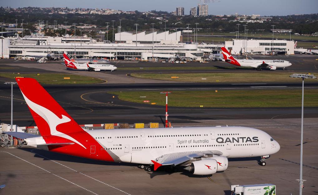 2020年3月18日,多架澳洲航空客機停泊在澳大利亞悉尼機場。新華社記者白雪飛攝