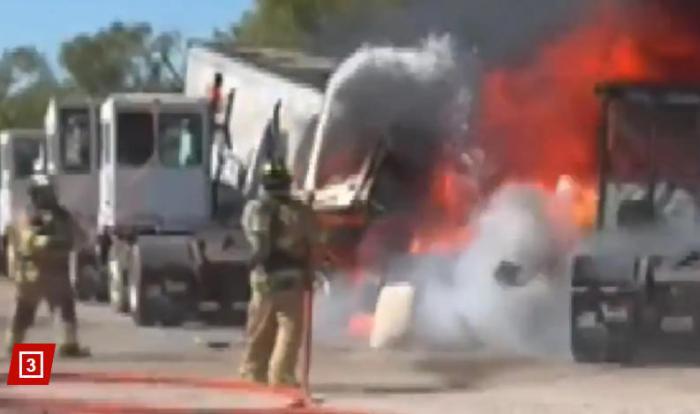 中新網(wǎng)10月13日電 綜合美媒報(bào)道,當(dāng)?shù)貢r(shí)間12日,美國得克薩斯州沃斯堡市,一架小型飛機(jī)在??怂箼C(jī)場附近墜毀,造成地面多輛半掛卡車起火,另有2人死亡。