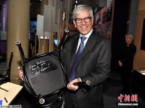 資料圖:2018年諾貝爾經(jīng)濟(jì)學(xué)獎獲得者保羅·羅默展示其簽名的椅子。