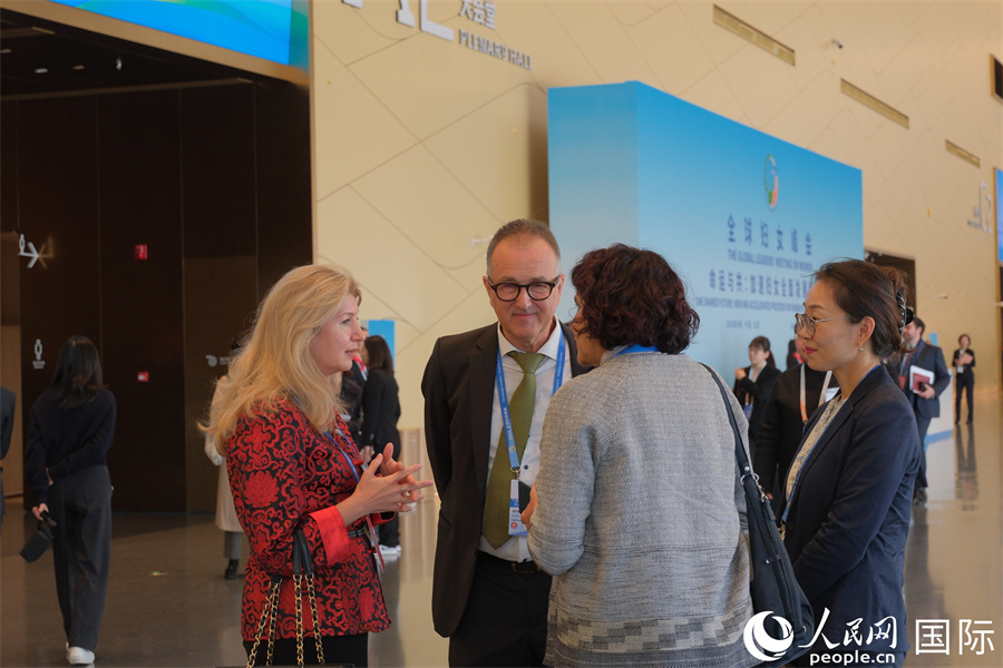 | 嘉賓在全球婦女峰會(huì)現(xiàn)場(chǎng)交流。人民網(wǎng)記者 宋美琪攝 |
