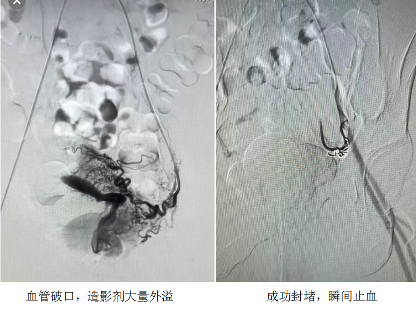 在介入手術(shù)室,黃遷祥團(tuán)隊?wèi){借精湛的技術(shù),順利將導(dǎo)管超選擇性插入目標(biāo)血管。造影劑注入后,屏幕上清晰顯示子宮區(qū)域一團(tuán)紊亂、迂曲的異常血管團(tuán),隨后,黃遷祥通過導(dǎo)管將數(shù)百枚微小的栓塞顆粒及5枚彈簧圈精準(zhǔn)注入。頃刻間,造影顯示異常血管團(tuán)的顯影完全消失,血流被成功阻斷,而正常子宮血管則完好無損,手術(shù)歷時僅約一小時。術(shù)后,李女士僅留下一個約2毫米的穿刺點,無需縫合,幾乎無疤痕。