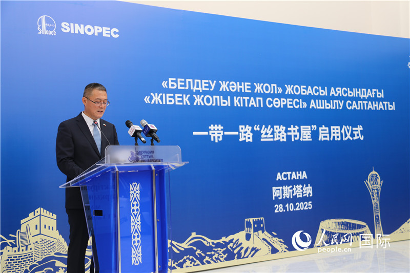人民網(wǎng)阿斯塔納10月28日電 (記者李強)10月28日,由中國石油化工集團與哈薩克斯坦歐亞大學共同主辦的“絲路書屋”啟用儀式于哈薩克斯坦歐亞大學舉行。中國駐哈薩克斯坦使館公使銜參贊蘇予、歐亞大學校長埃爾蘭·西德科夫、中石化駐哈機構總代表曾凡禮出席儀式并致辭。