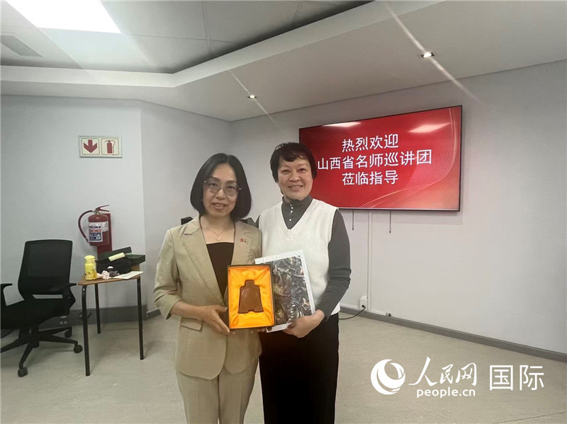 山西省名師巡講團與西開普大學中醫(yī)孔子學院互贈紀念品。人民網 董嘉怡攝