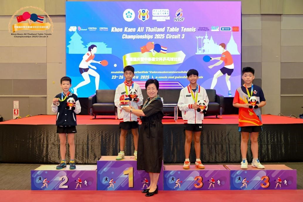 人民網(wǎng)曼谷10月29日電 (記者孫廣勇)10月23日至26日,由中國(guó)駐孔敬總領(lǐng)館與泰國(guó)乒乓球協(xié)會(huì)、孔敬公立華僑學(xué)校聯(lián)合主辦的全泰四星級(jí)乒乓球賽“中國(guó)國(guó)慶暨中泰建交杯乒乓球比賽”圓滿(mǎn)落下帷幕。