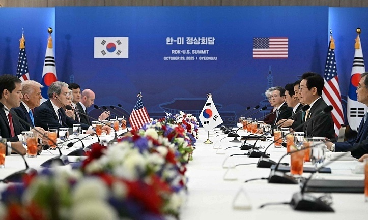 韓國(guó)總統(tǒng)李在明10月29日在韓國(guó)慶州同到訪的美國(guó)總統(tǒng)特朗普會(huì)晤,討論鞏固韓美同盟等問(wèn)題。