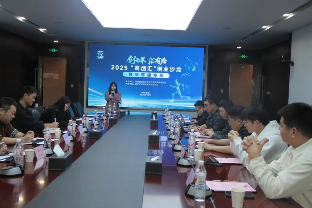 10月31日下午,由鄂州葛店經(jīng)濟(jì)技術(shù)開發(fā)區(qū)管理委員會(huì)主辦、武漢光谷咖啡創(chuàng)投有限公司承辦的2025“葛創(chuàng)匯”創(chuàng)業(yè)沙龍——具身智能專場在葛店經(jīng)開區(qū)招商展示中心舉行。葛店國家經(jīng)開區(qū)創(chuàng)新創(chuàng)業(yè)中心副主任李永元,與來自智擎機(jī)器人、乾元集成電路、峰客科技、湖北瀛楚律師事務(wù)所的4位嘉賓及12家區(qū)內(nèi)企業(yè)、高校創(chuàng)業(yè)團(tuán)隊(duì)代表共聚一堂,圍繞機(jī)器人多模態(tài)感知、自主決策與智能控制等前沿話題展開深度交流。