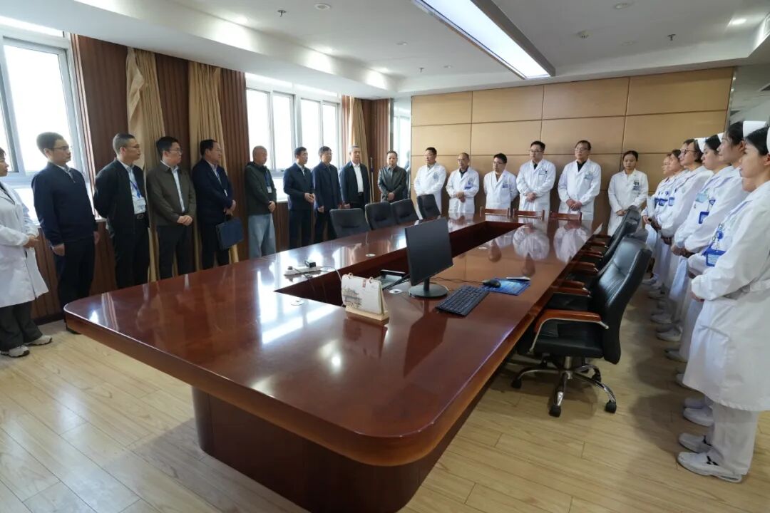 當(dāng)天清晨,醫(yī)院領(lǐng)導(dǎo)班子成員及相關(guān)職能科室負(fù)責(zé)人抵達(dá)新病區(qū),全程參與介入血管科的晨間交接班會(huì)議。領(lǐng)導(dǎo)們認(rèn)真傾聽夜班與白班醫(yī)護(hù)人員關(guān)于患者病情、治療方案及護(hù)理重點(diǎn)的詳細(xì)交接,并對(duì)科室未來發(fā)展提出了殷切期望和明確要求。